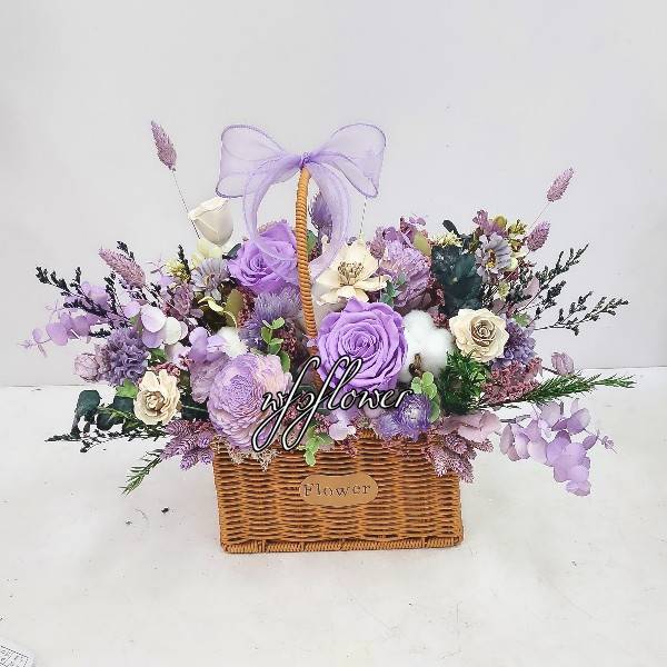 J133夢幻紫永生花提籃式 祝賀花禮 台南花店