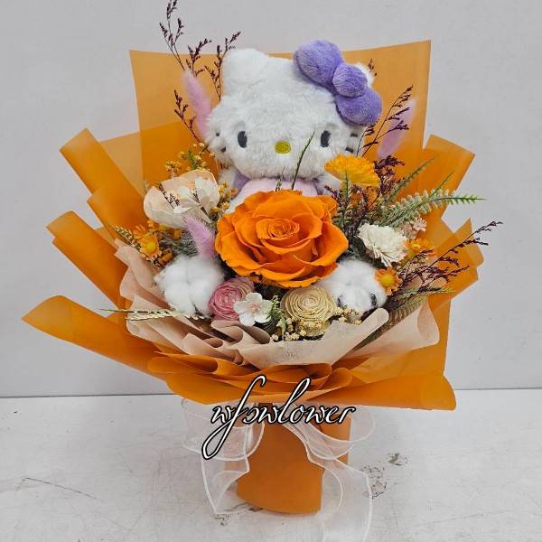 N034 橘色永生玫瑰+ Hello Kitty 台南花店