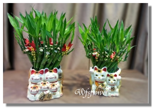 首頁 > 勢如破竹 旺旺 開運竹 > R037 螺旋型招財貓 開運竹一對 開幕榮升盆景