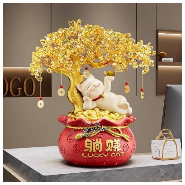 Z029躺賺 招財貓金錢樹 擺件開幕推薦