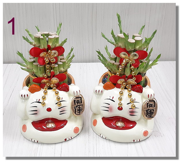 R050 小招貓開運竹招財盆景 台南市花店(一對)