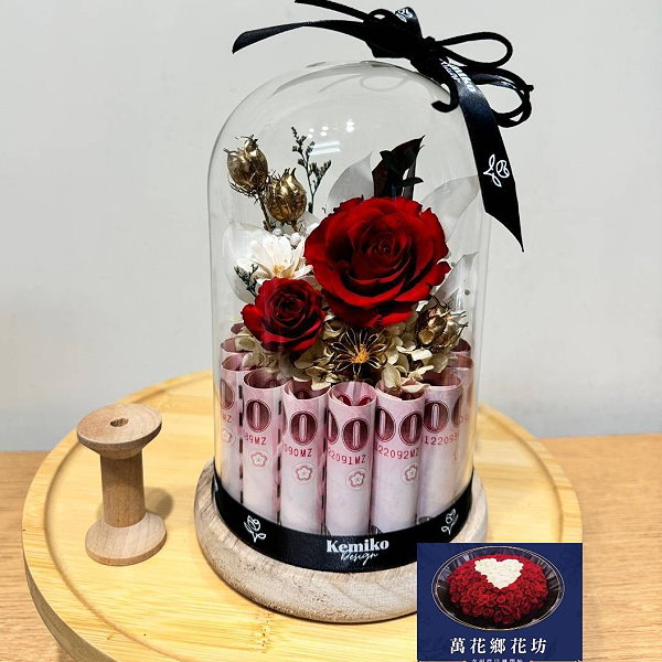 首頁 > 有錢花/鈔票花束 > Q065 有錢花盅罩花 情人節花禮 台南花店