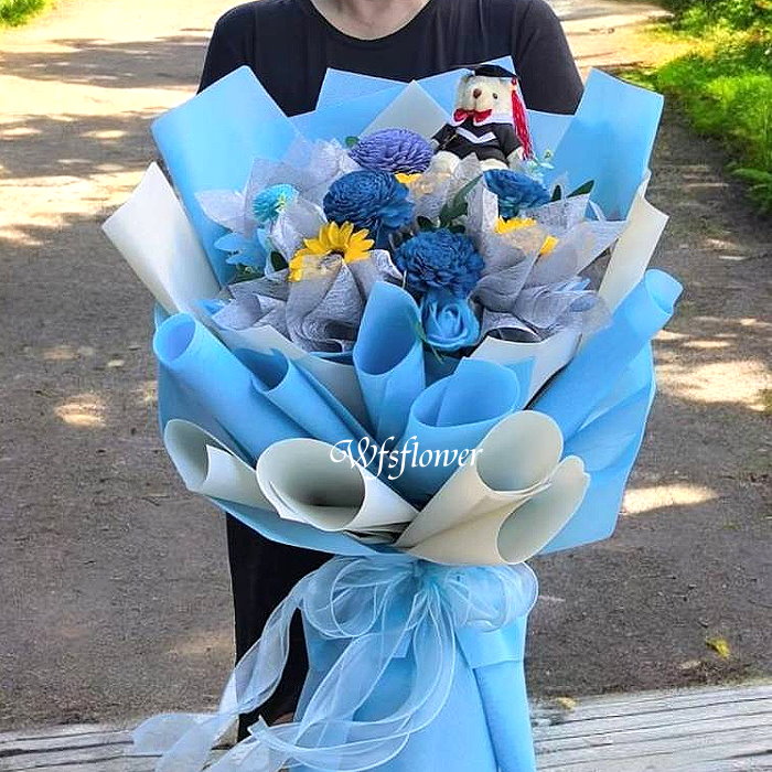 J013 向日葵香皂花索拉花束畢業花禮推薦