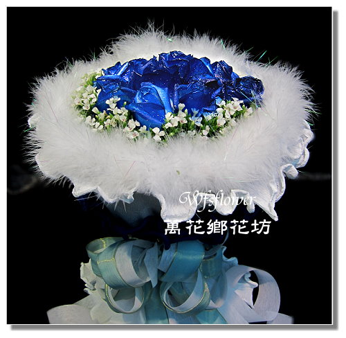 圓型高雅藍玫瑰11朵加白色羽毛+精緻包裝
