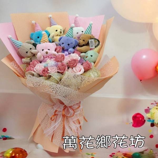 M022 繽紛世界 熊熊花束 生日花束 台南市花店