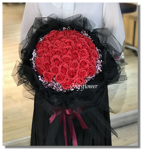 紅色香皂花50朵加滿天星